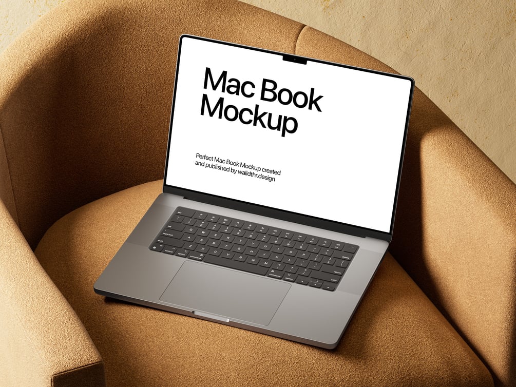 6 MacBook Pro mockups – Premium PSD Templates with Realistic Environments